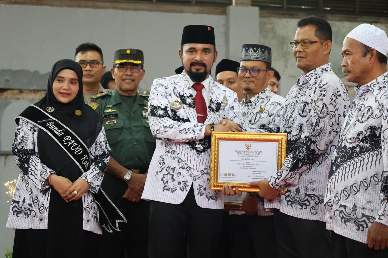 Sepuluh guru dan tenaga kependidikan (GTK) Aceh Timur menerima penghargaan. Tgk. H. Alauddin dinobatkan Tokoh Peduli Pendidikan, Zulkifli sebagai Pengawas Berdedikasi, dan Supiono dari Disdikbud Aceh Timur jadi Pengawas Berprestasi.