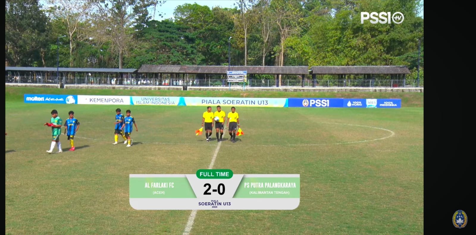 Skor 2-0 bertahan hingga peluit panjang dibunyikan wasit. Dengan kemenangan ini, Al-Farlaky FC mengoleksi total 7 poin dari tiga laga di Grup H (2 kali menang, 1 kali imbang) dan dipastikan lolos ke babak 16 besar Piala Soeratin Nasional U-13.
