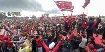 Lhokseukon | Bumi Pasee memerah dipadati puluhan ribu massa pada Kampanye Akbar pasangan Gubernur dan Wakil Gubernur Aceh 02, Muzakir Manaf dan Fadhlullah (Mualem-Dek Fadh).