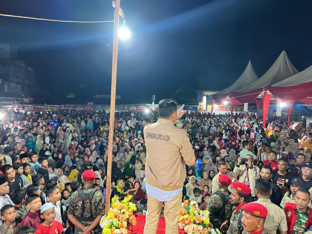 Idi Rayeuk | Calon Bupati Aceh Timur, Iskandar Usman Alfarlky dan T Zainal Abidin (AZAN) disambut hangat ribuan warga Indra Makmue, Minggu malam, 10 November 2024.