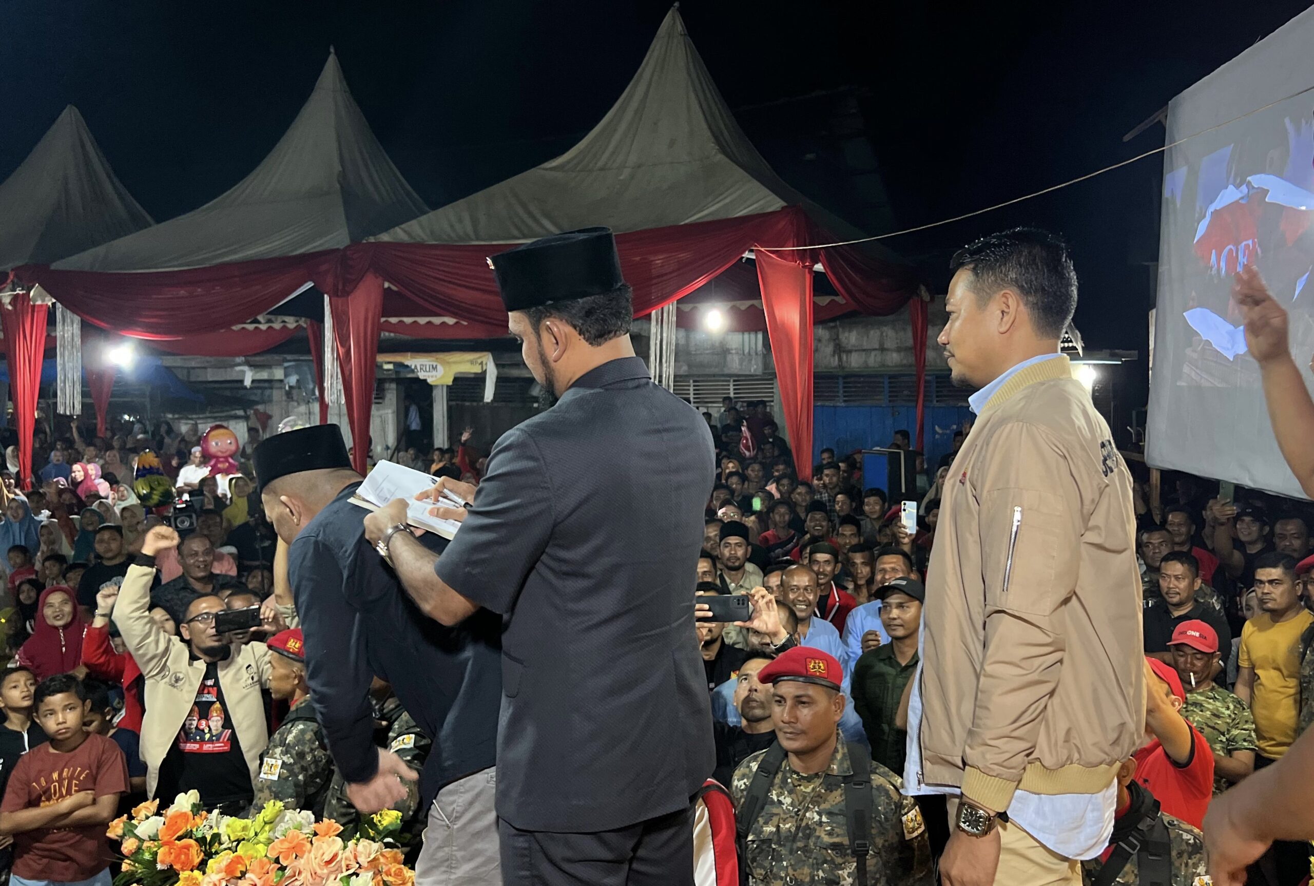 Kontrak politik itu langsung diteken oleh paslon AZAN, Iskandar Usman Alfarlky dan T Zainal Abidin dan turut disaksikan ribuan warga Indra Makmu.