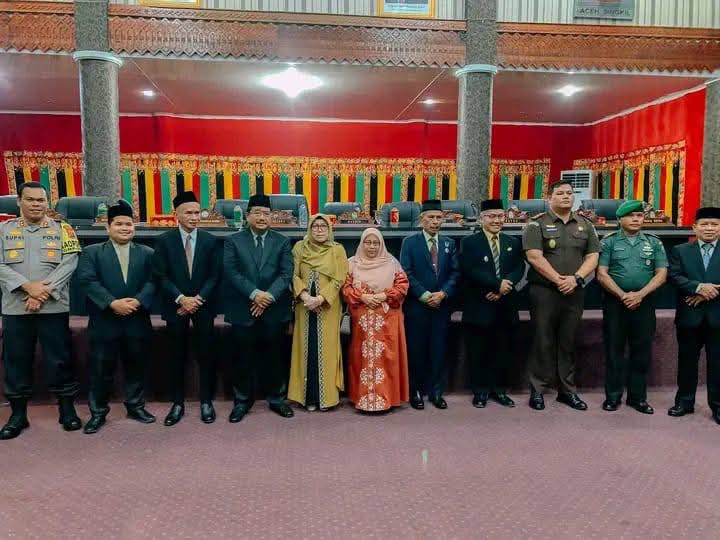 Rapat paripurna berlangsung di ruang sidang Kantor DPRK setempat, turut dihadiri Bupati dan Wakil Bupati Aceh Singkil terpilih, H Syafriadi Oyon dan H Hamzah Sulaiman, beserta Istri, Pj Bupati Drs Azmi, unsur Forkopimda, Pj Sekda.