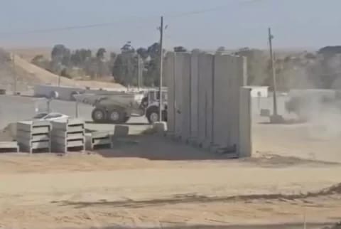 Rekaman yang dipublikasikan Haaretz menunjukkan truk-truk yang melintasi perbatasan Kissufim dari Israel ke Gaza, membawa muatan limbah konstruksi.