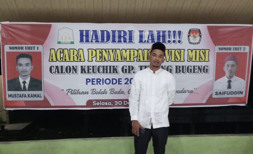 ACEH TIMUR | Mustafa Kamal, seorang pemuda progresif yang berusia berusia 28 telah mendaftarkan diri sebagai calon Keuchik Desa Tunong Bugeng, Kecamatan Darul Falah, Kabupaten Aceh Timur.